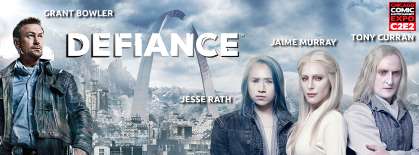 The Defiance panel was a prime example of why we decided to attend. 15 minutes before the panel began we got into a line that looked a tiny bit daunting… it was the kind of line you wouldn’t want to get into in San Diego at Comic-Con, for fear you wouldn’t get into the room. But, at C2E2, that was not a problem. A little patience, a lot of nice people, a few minutes, and suddenly you find yourself seemingly within 20 or 30 rows of the front of the row. It was amazing!
