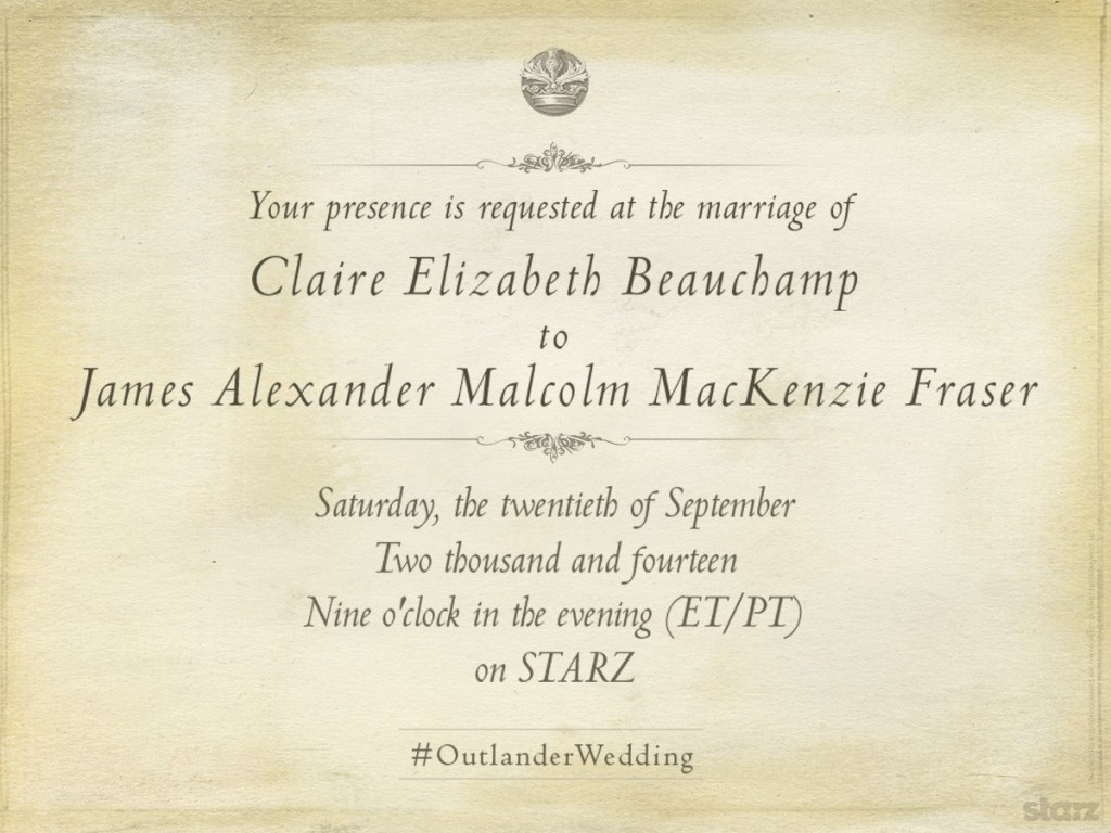 Chapters 14 and 15 of Diana Gabaldon’s Outlander cover the wedding of Claire Elizabeth Beauchamp (Caitriona Balfeand James Alexander Malcolm MacKenzie Fraser (Sam Heughan) known to one and all by the nickname Jamie.